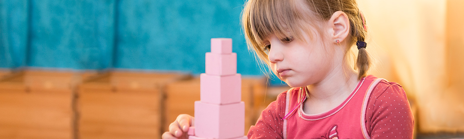 Unsere Aufgabe als Erzieherin ist es, das Kind entwicklungsangemessen anzuregen und zu unterstützen. Eine wichtige Rolle spielen dabei die Verbindung von Spielen und Lernen und das Lernen mit allen Sinnen. Das Montessori-Material ist als konkretes Erfahrungsmaterial besonders geeignet, um vielfältige Fähigkeiten, Fertigkeiten, vorschulische Basiskompetenzen sowie fundiertes Wissen und Können zu erlangen.